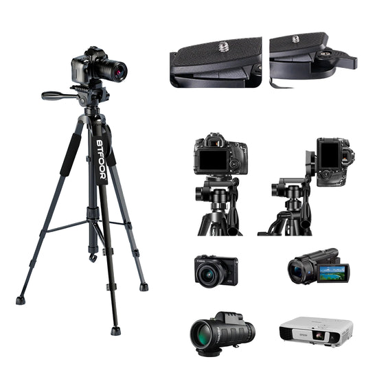 Trépied en Aluminium 55” avec Tête Panoramique pour Appareils Photo et Smartphones